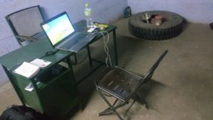 ஒரு பழைய இரும்பு நாற்காலி, மேஜை, சிறிய அறை, பழைய டயர்கள் .. என்று சுற்றும் சூழ அந்த அறை என்னை வரவேற்த்தது. வேர்த்ததும்.